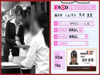 소개: 公開健康診断と称した2018年度SOD健康診断。健康状態を多くの人に確認してもらい社員の健康をしっかりと守ることを目的としました。男子社員のいるフロアで丸裸になり検査がスタート!もちろん子宮や肛門の中まで指を入れてしっかりと検診。性交の実演では何度も絶頂!気持良さそうでした。真似できない伝統行事が今年も開催!