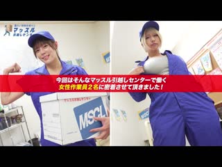 소개: ここは筋肉自慢の女性作業員が活躍している引っ越し会社『マッスル引越しセンター』。今回はこちらで働く従業員2名(都月さん勤務歴5年・乙さん勤務歴2年)に密着取材させて頂きました。男性にも負けない‘鍛え上げられた体’でお客様のお引っ越しを安心安全にサポートをモットーに「うちの会社では女性ならではの安心感や細やかな気配りとかをできるように取り組んでおります」業務中、何があってもお客様の大切なお荷物だけは絶対に傷つけません!潮ブチまけても笑顔で荷物を運送します!!